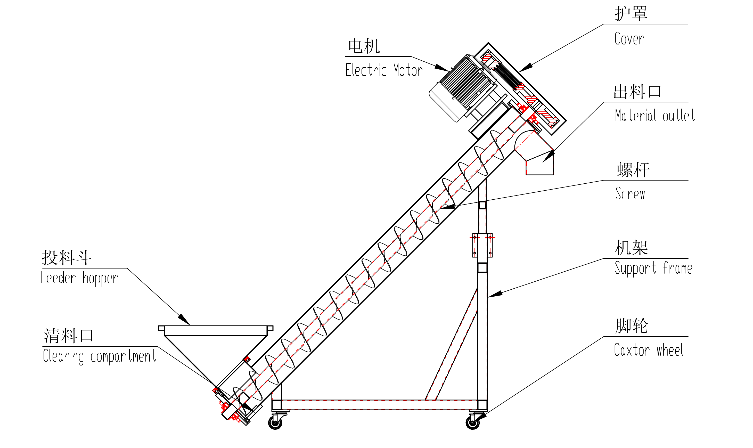 螺桿式上料機(jī)根據(jù)螺旋旋轉(zhuǎn)時(shí),由葉片的推動(dòng)作用,同時(shí)在物料自身重力、物料與料管內(nèi)壁間的摩擦力以及物料的內(nèi)摩擦力的作用下,物料與螺旋葉片和料管相對(duì)滑動(dòng)的形式,在料管內(nèi)向前移動(dòng)的機(jī)械傳動(dòng)原理設(shè)計(jì)的。可用于塑膠原料顆粒、粉塵料、礦砂等物料輸送;