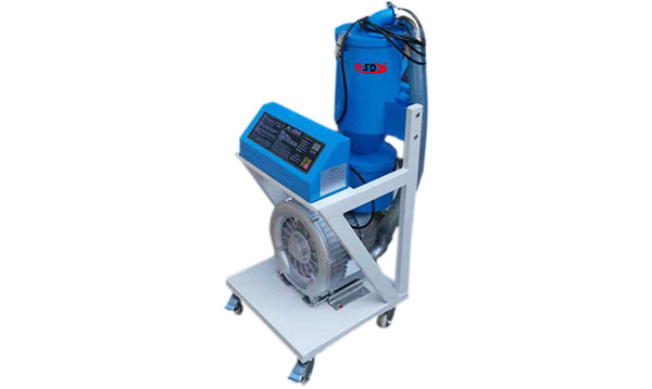 真空吸料機中裝有壓縮空氣反吹裝置,每次放料時,壓縮空氣脈沖反吹過濾器,把吸附于過濾器表面的粉末打落下來,以保證吸料能正常運行。