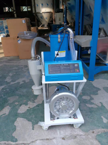 真空吸料機是用真空泵抽氣,使吸料嘴進口處及整個系統(tǒng)處于一定的真空狀態(tài),粉粒料隨同外界空氣被吸入料嘴,形成料氣流,經(jīng)過吸料管到達料斗,在料斗中進行氣、料分離。分離后的物料進入受料設備。輸送、放料是通過氣動三通閥不斷地開、閉來完成的,而氣動三通閥的開閉是由控制中心來控制的。